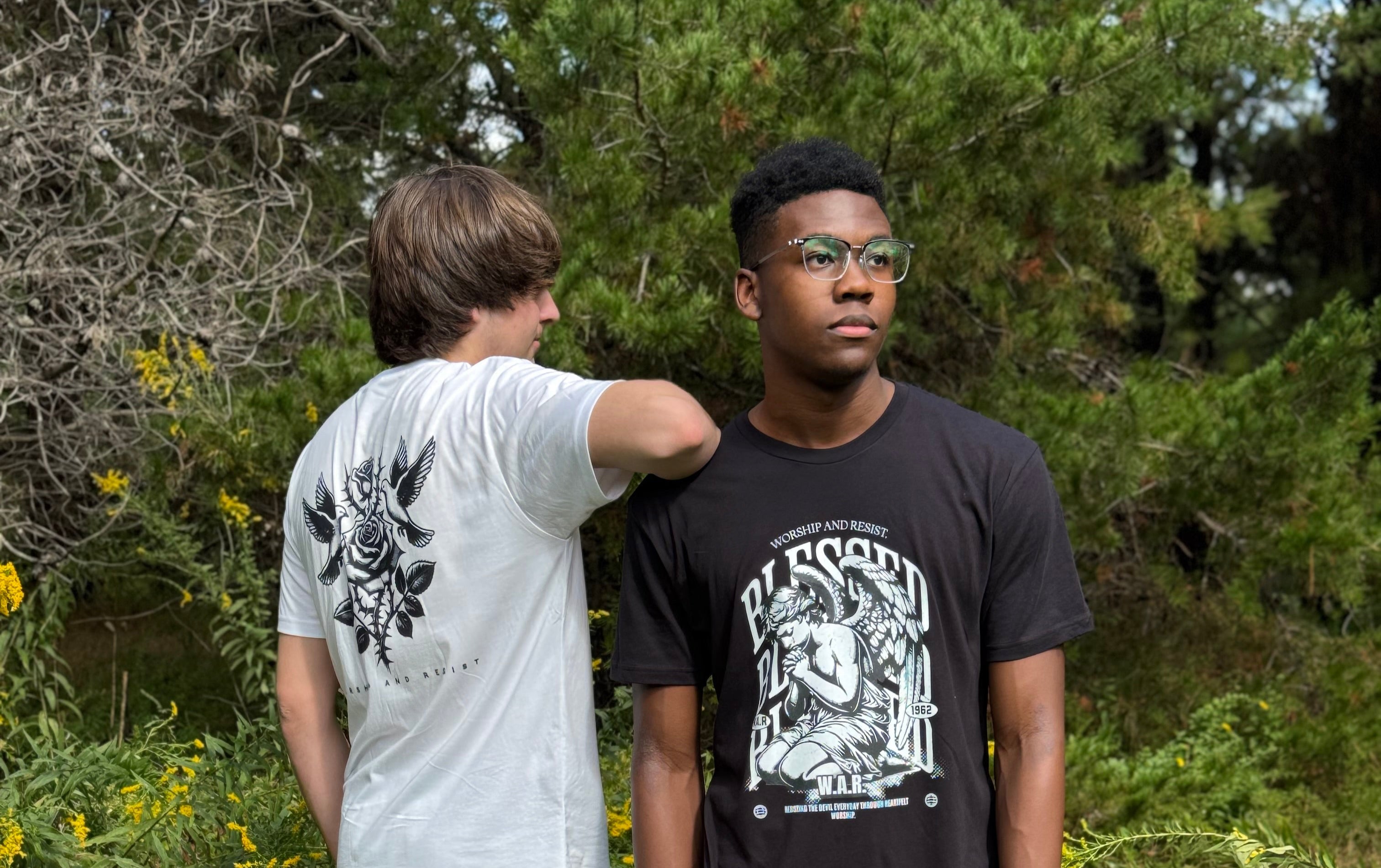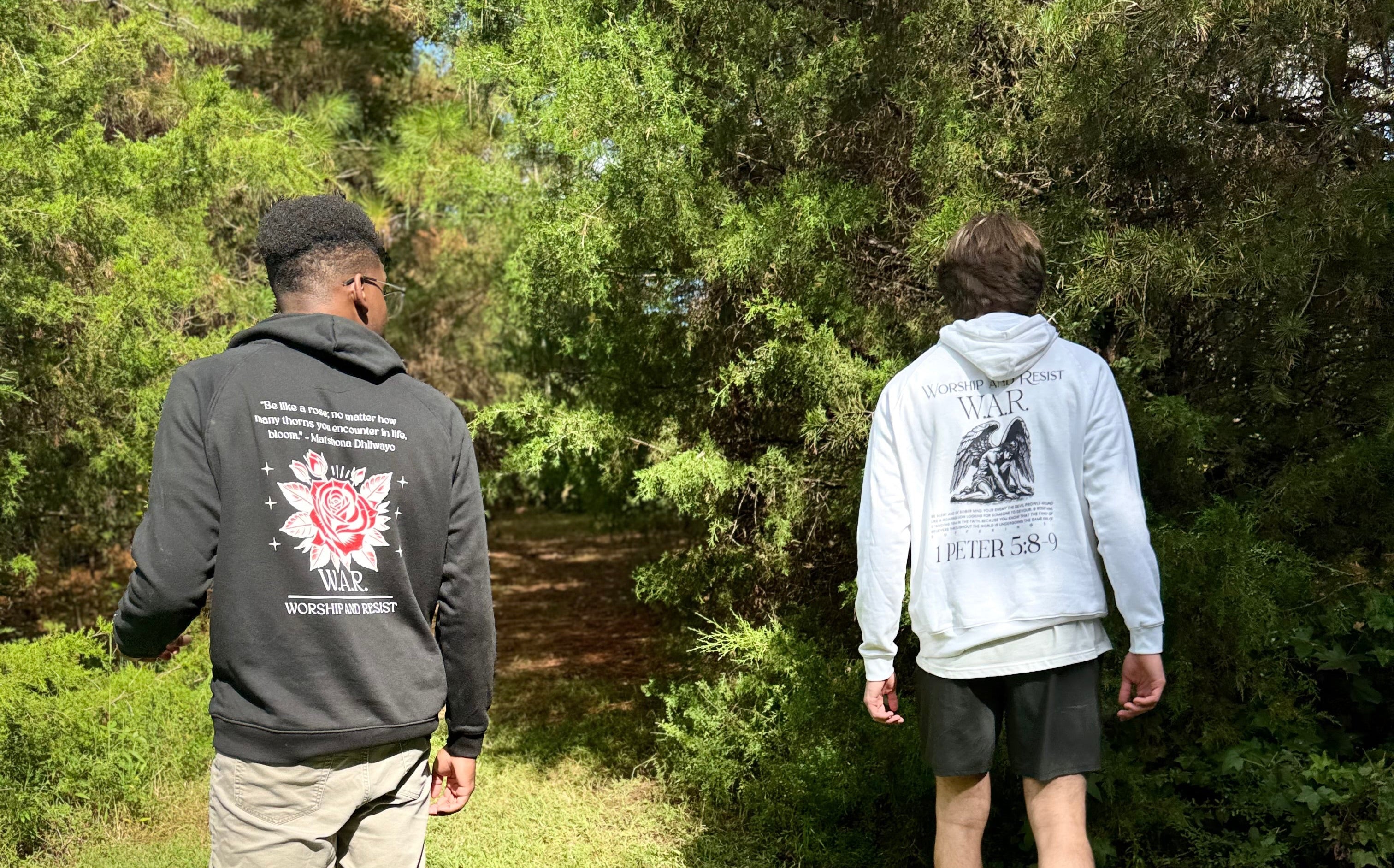 In today’s age, it’s easy to forget that a constant battle is waging for our souls, and this bothered us. We committed ourselves to creating a brand that could not only be a key conversation starter about a person’s eternity, but also a reminder that attacks are coming from everywhere, and we must be prepared to face them and fight back. That is why we started our brand: Worship and Resist.